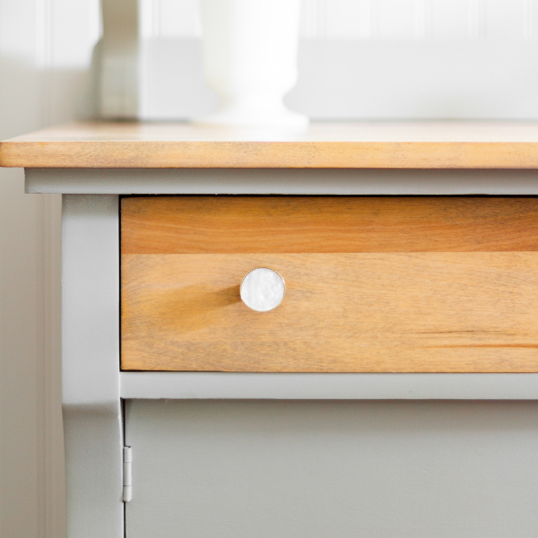 Remarque : l'application d'un apprêt n'est généralement pas nécessaire avec la peinture minérale Fusion. Pour les bavures ou les nœuds, utilisez l'apprêt à base de gomme laque Zinsser BIN. Pour les transitions du foncé au blanc, utilisez une couleur moyenne comme Sterling comme apprêt.