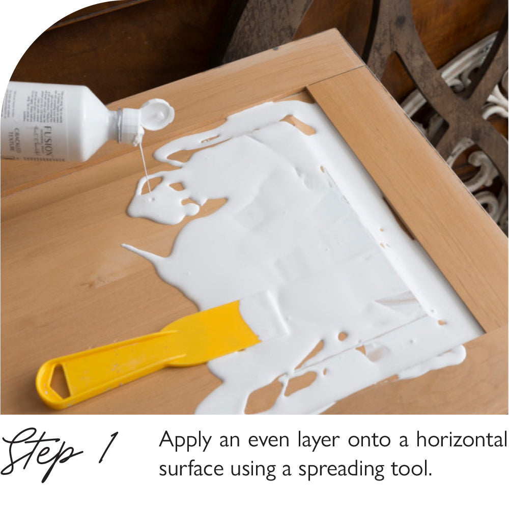 Stir before using. Apply to a horizontal surface for best results. Apply an even layer with a spreading tool. This product is self-levelling. Tap to settle air bubbles. Thicker application will result in larger, more defined cracking. Spreading will result in smaller cracking. DO NOT MIX PAINT with this product or no cracking will occur.