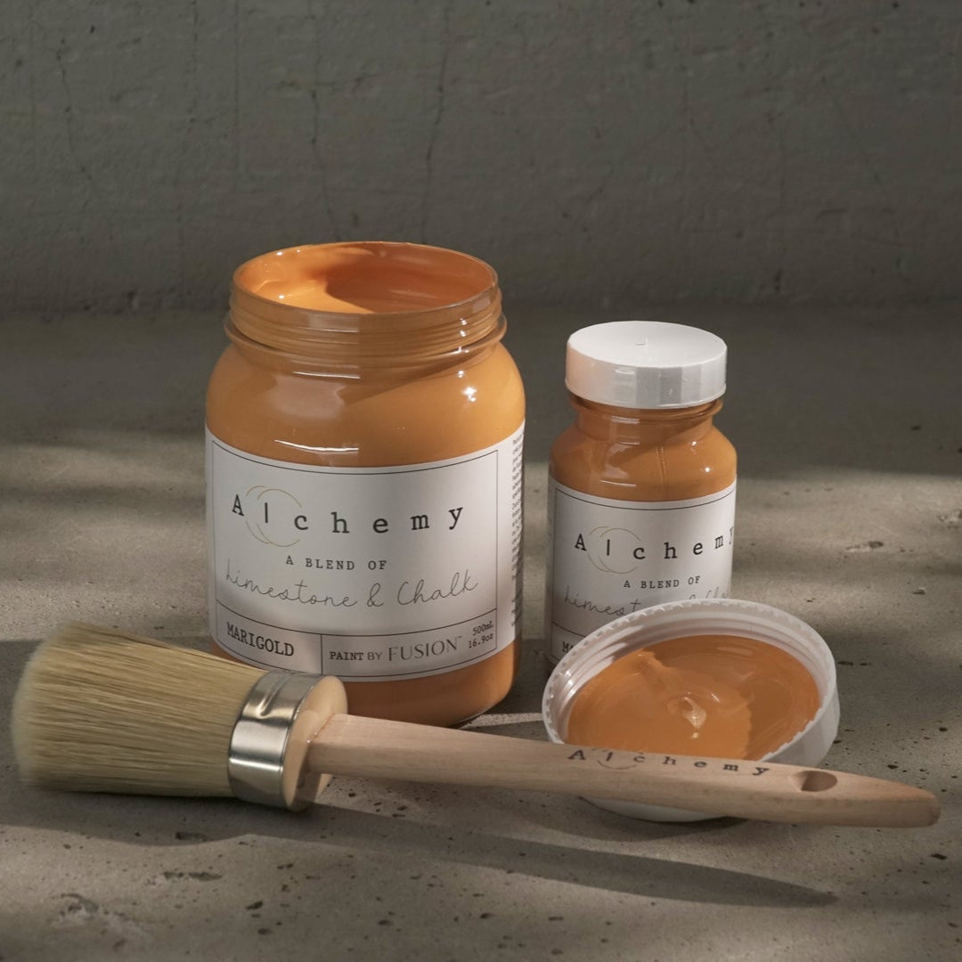 Alchemy by Fusion brings you the sought after familiar chalk-like qualities, combined with Fusion and Milk Paint´s durability. Whether you are picking up a brush for the first time, or are an advanced furniture painter Alchemy is your creative partner. From the moment you dip your brush, you become the alchemist of your own design. Embark on the journey through time and colour, and transform your world around you.