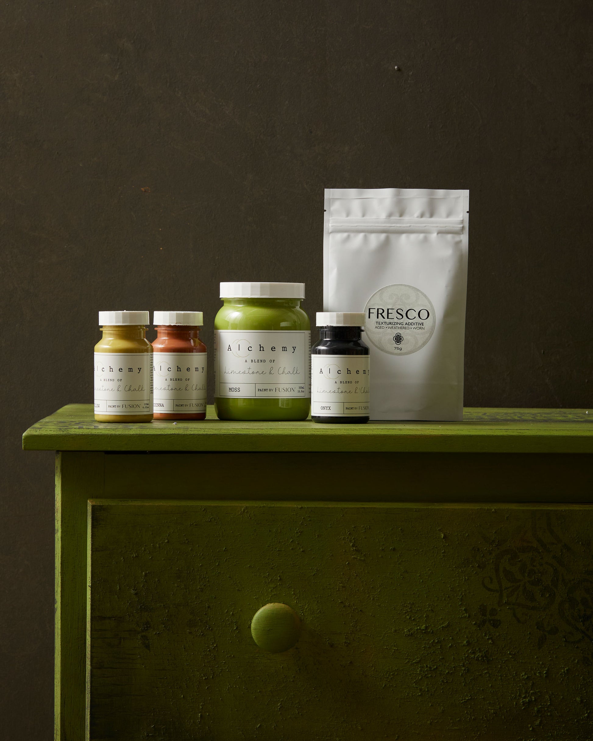 Alchemy by Fusion brings you the sought after familiar chalk-like qualities, combined with Fusion and Milk Paint´s durability. Whether you are picking up a brush for the first time, or are an advanced furniture painter Alchemy is your creative partner. From the moment you dip your brush, you become the alchemist of your own design. Embark on the journey through time and colour, and transform your world around you.