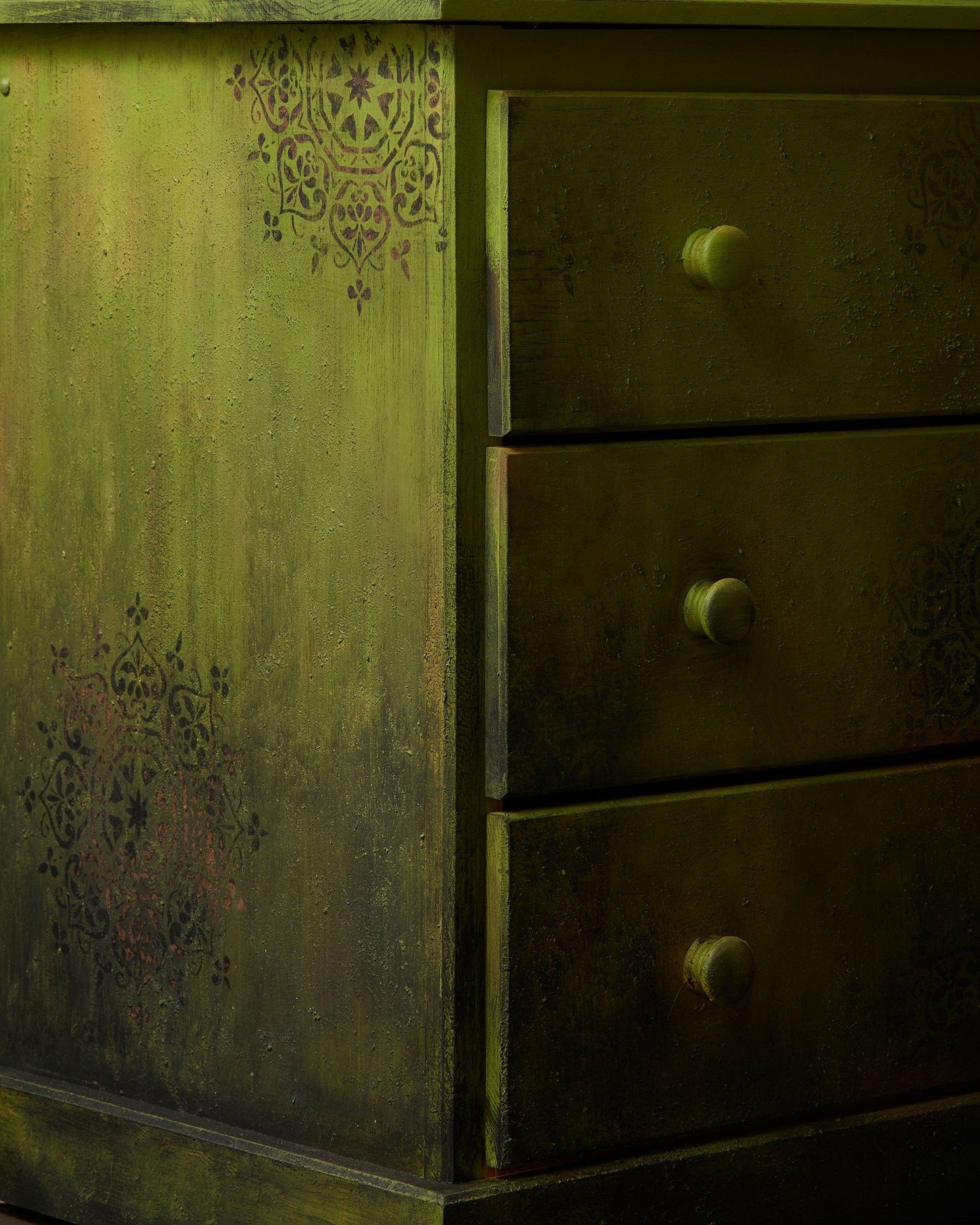 Alchemy is fantastic for furniture makeovers, but for high-traffic surfaces like kitchen cabinets, we highly recommend Fusion Mineral Paint, as it is self-sealing and built for durability. Or you can apply a durable top coat over Alchemy for heavier traffic areas.