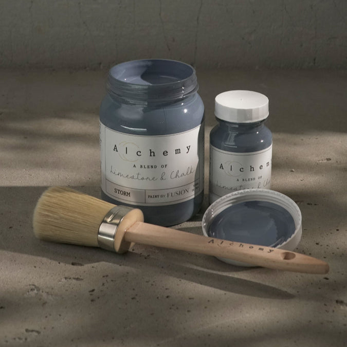 Alchemy by Fusion brings you the sought after familiar chalk-like qualities, combined with Fusion and Milk Paint´s durability. Whether you are picking up a brush for the first time, or are an advanced furniture painter Alchemy is your creative partner. From the moment you dip your brush, you become the alchemist of your own design. Embark on the journey through time and colour, and transform your world around you.