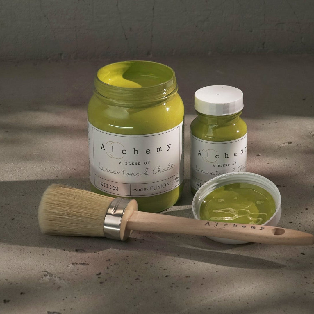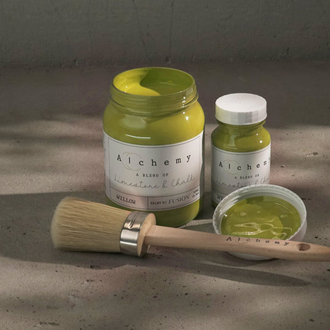 Alchemy by Fusion brings you the sought after familiar chalk-like qualities, combined with Fusion and Milk Paint´s durability. Whether you are picking up a brush for the first time, or are an advanced furniture painter Alchemy is your creative partner. From the moment you dip your brush, you become the alchemist of your own design. Embark on the journey through time and colour, and transform your world around you.